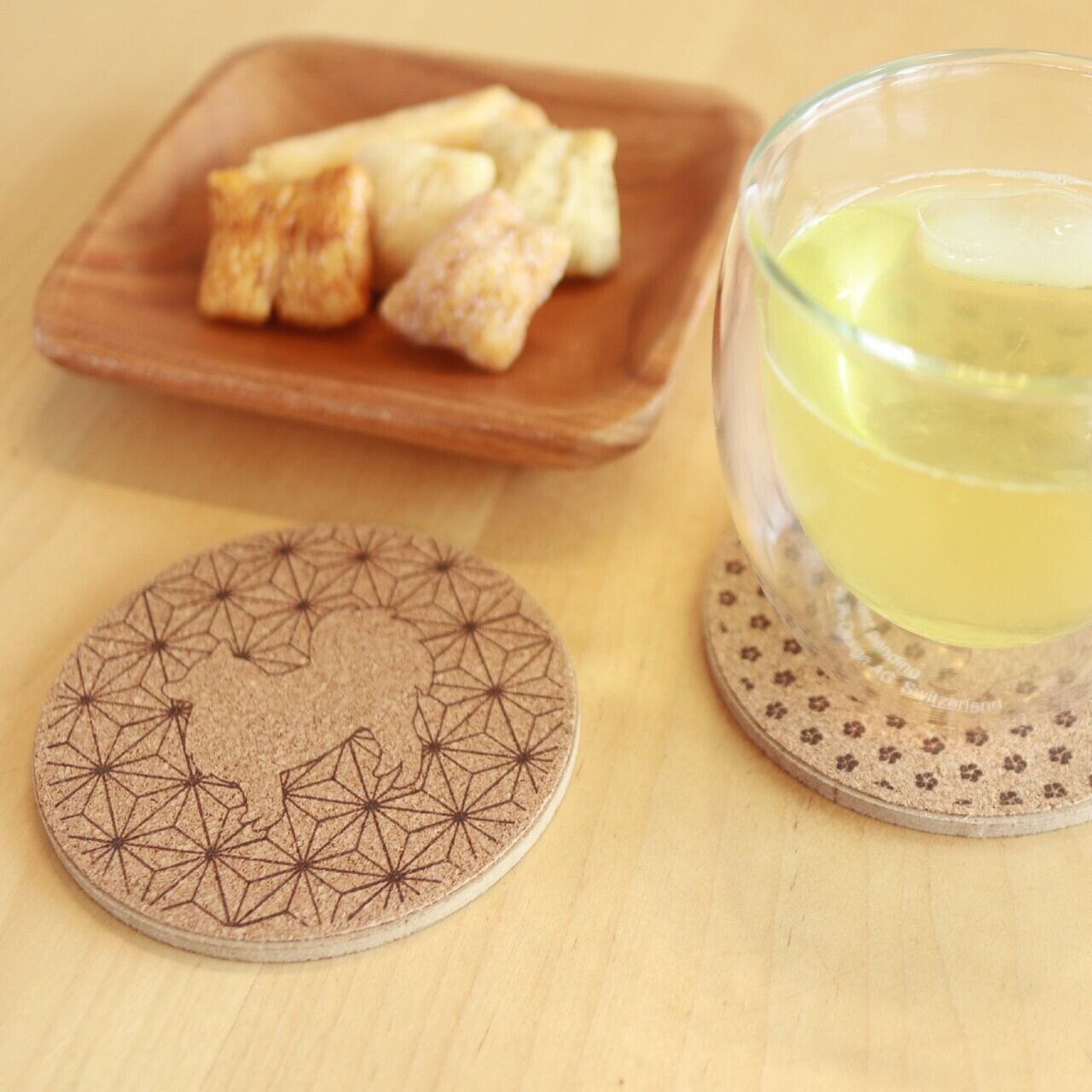 透明なグラスに淹れた緑茶やビールグラスのコースターとしてお使いいただくのもおしゃれです。