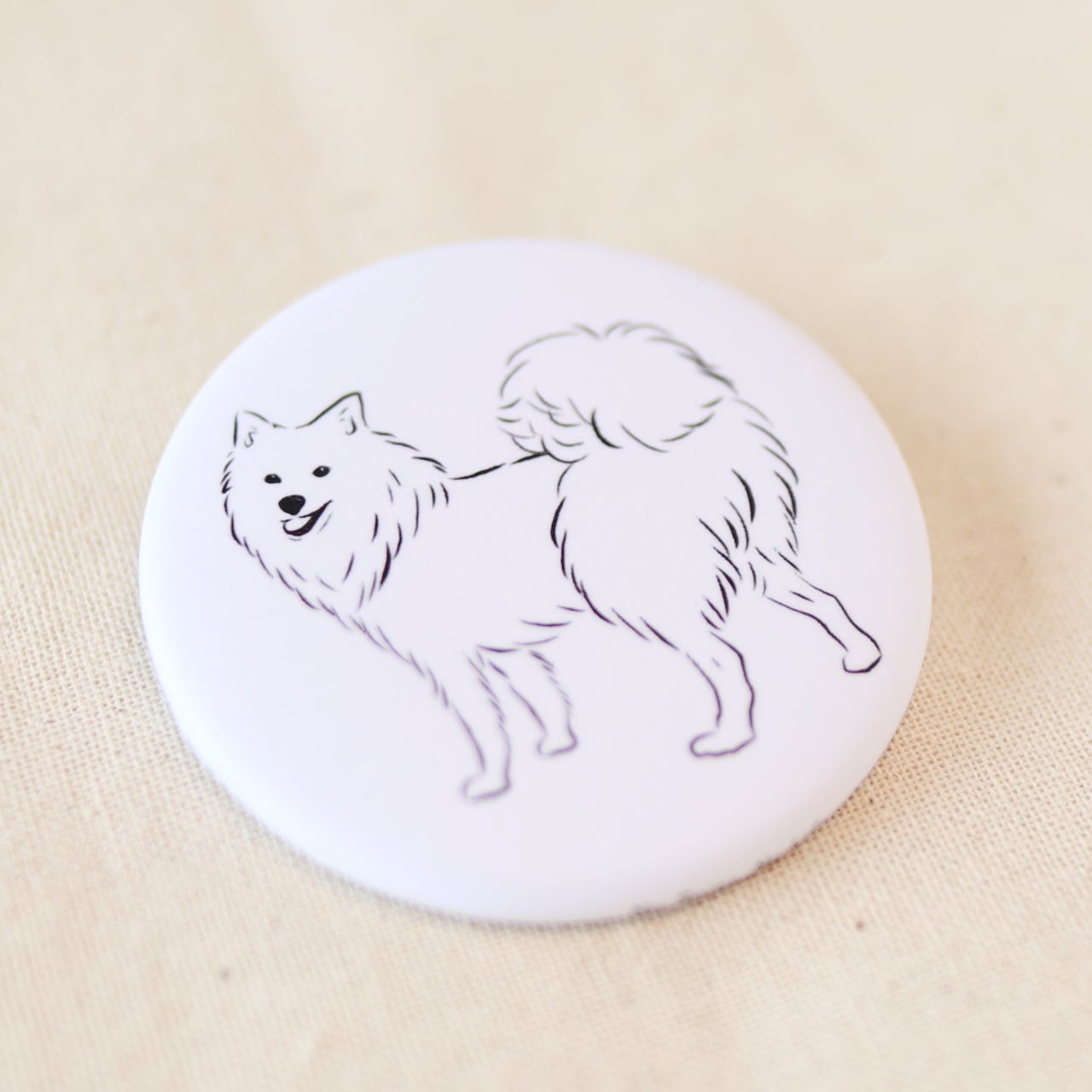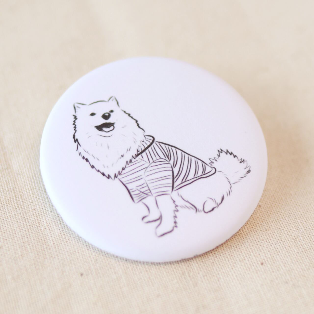 日本スピッツのイラストをあしらったオリジナル缶バッジ。
