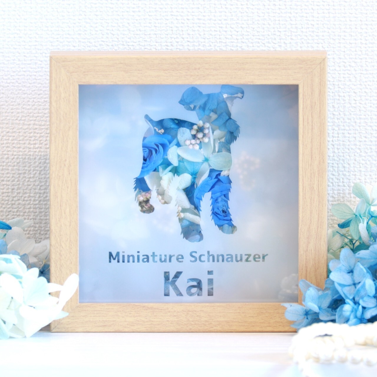 文字は、犬種名(Miniature Schnauzer)や誕生日などの記念日、もしくはメッセージなどを入れることができます。