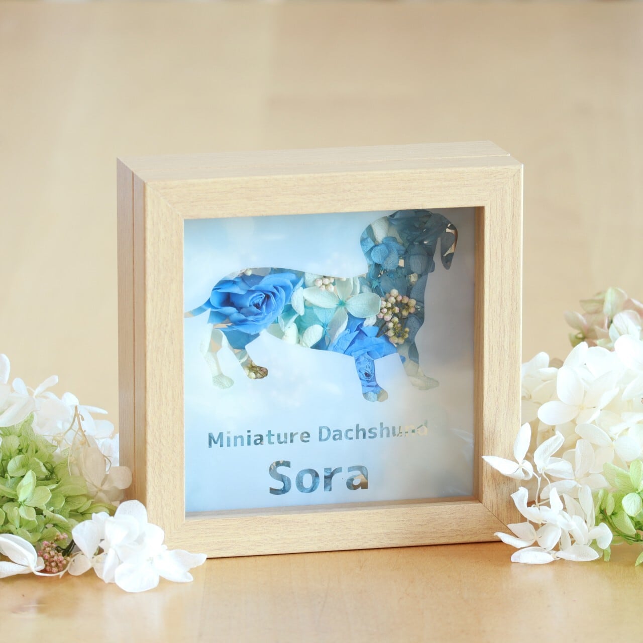 プリザーブドフラワーとダックスフンドのシルエットで作った、かわいくておしゃれなフラワーアレンジメント✿
