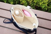 カートを引いて歩くときはトートを取っ手にかけて持ち歩くのも便利です。